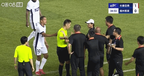 经过VAR核验,长春亚泰进球有效,这引发了梅州客家球员和教练组的强烈不满。